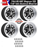 Magnum 500 Wheel, 17x8" Satin Aluminum, Set of 4 With Center Caps Emblems Only & Lug Nuts, 1968-74 AMC Javelin, Javelin AMX, AMX - Drop ships in approx. 1-4 weeks