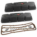 Valve Cover Kit, 343 Logo, Finned Black Wrinkle Aluminum, 1967-69 AMC, Jeep - Allow approximately 2-3 weeks for manufacturing plus shipping