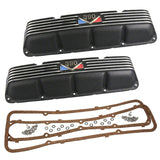 Valve Cover Kit, 390 Logo, Finned Black Wrinkle Aluminum, 1968-70 AMC, Jeep - Allow approximately 2-3 weeks for manufacturing plus shipping
