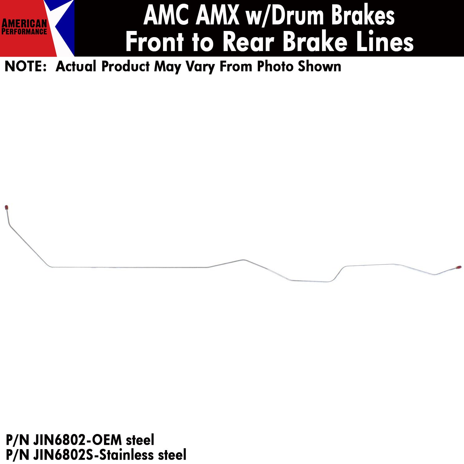 Front To Rear Brake Line, Front Drum, 1968-70 AMC AMX (OE Steel or Stainless) - Drop ships in approx. 4-6 weeks
