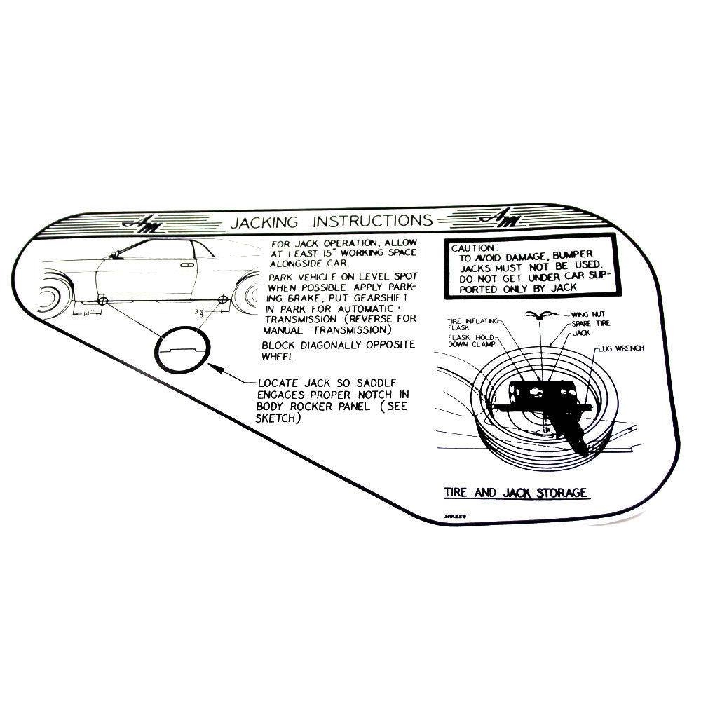 Jack Instructions Decal, Space Saver Spare, 1968-69 AMC AMX, Javelin