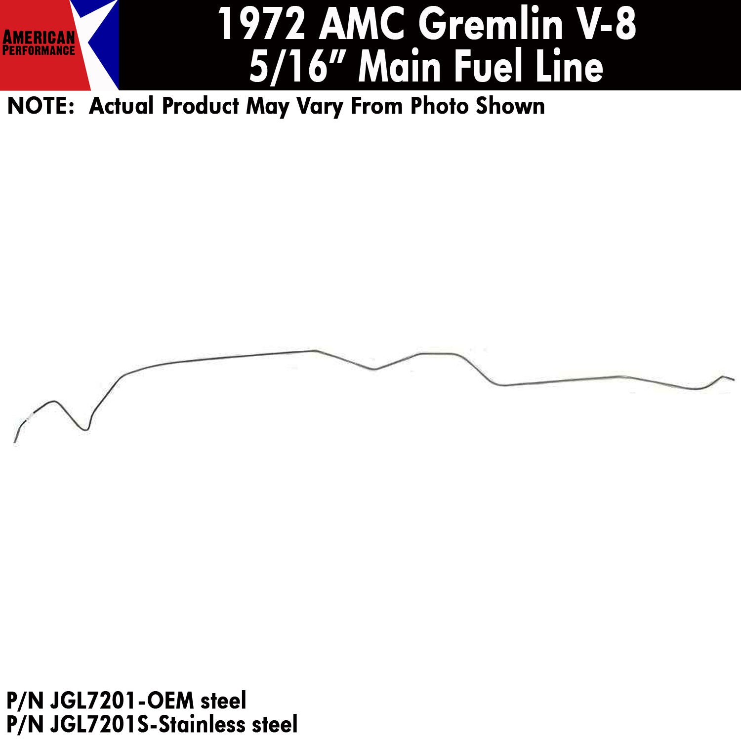 Fuel Line, 5/16" Main Front To Rear, V-8, 1972 AMC Gremlin (OE Steel or Stainless) - Drop ships in approx. 4-6 weeks