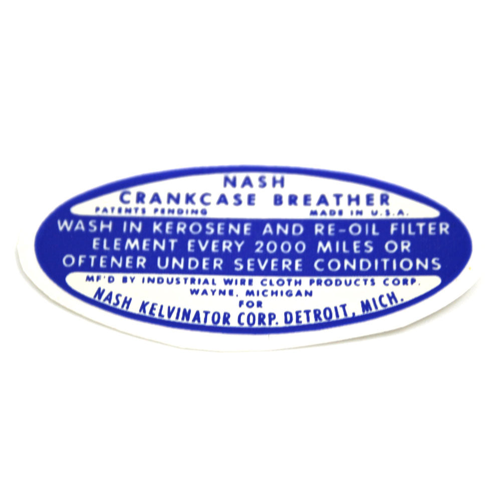Air Cleaner Decal, Oil Bath, 1947-56 Nash, Rambler