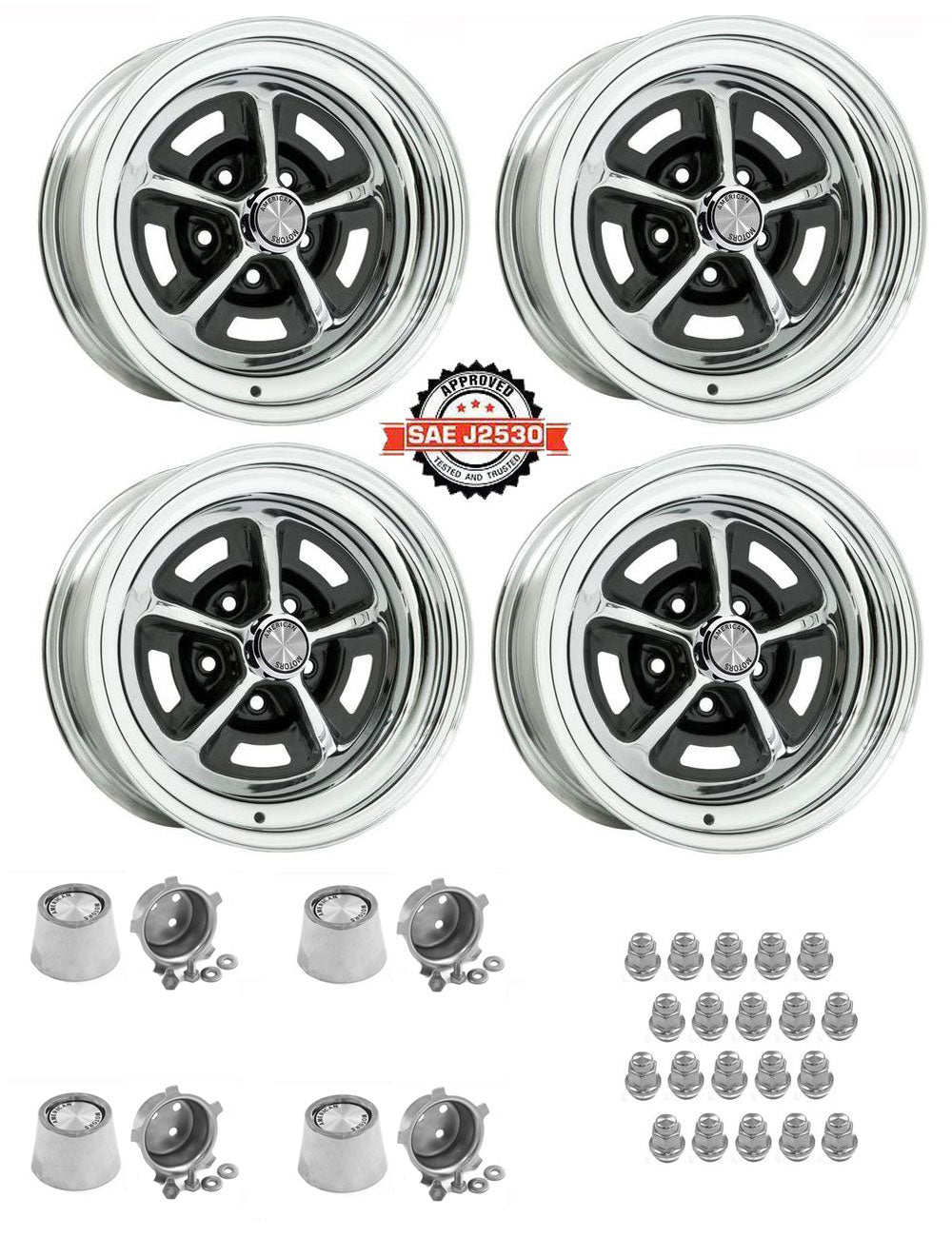 - Includes (4) chrome steel Magnum 500 wheels, (4) reproduction original style AMC center caps with retainers & hardware, and (4) reproduction original style AMC stainless chrome lug nuts