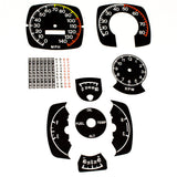 - Kit Includes: 140 MPH speedometer face, 8,000 RPM tachometer face, gasoline gauge face, temperature gauge face, oil pressure gauge face, ammeter gauge face, clock face, gauge legend for temp/fuel/oil/alt